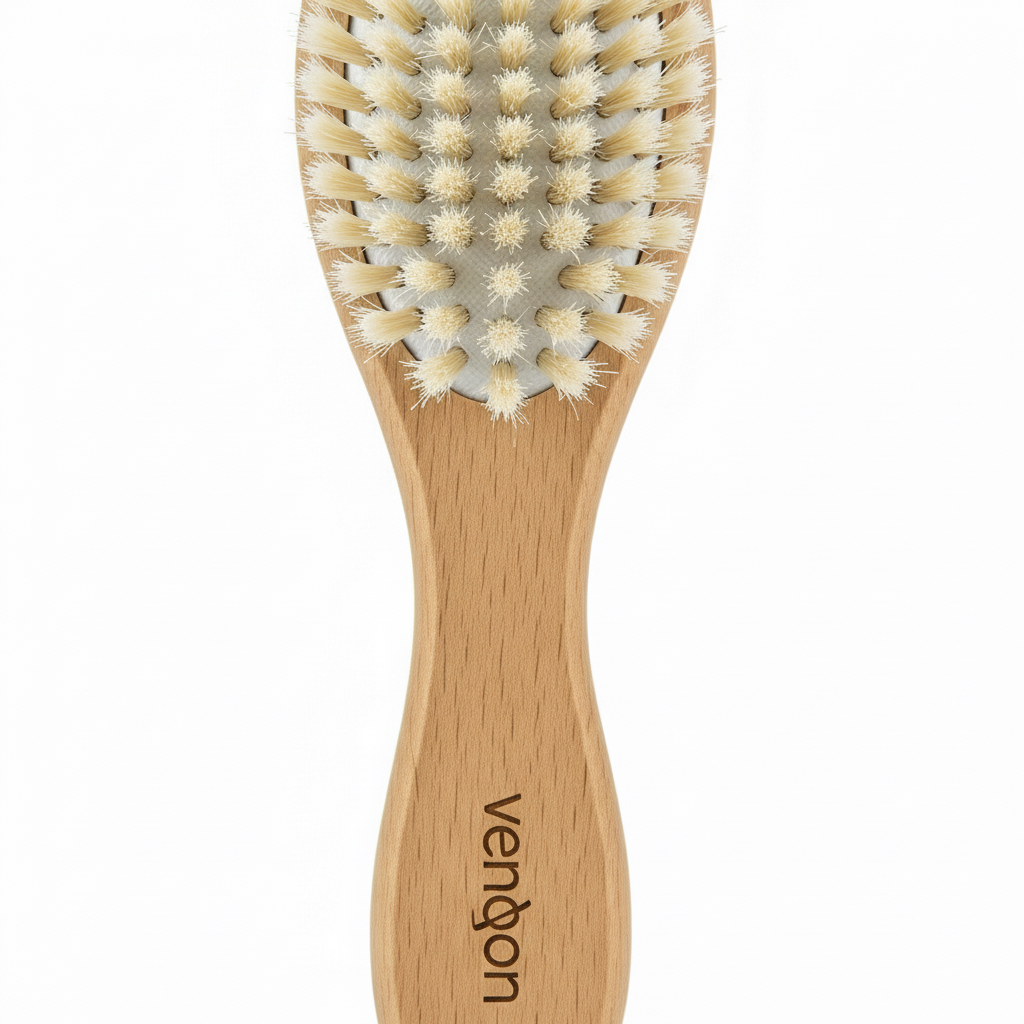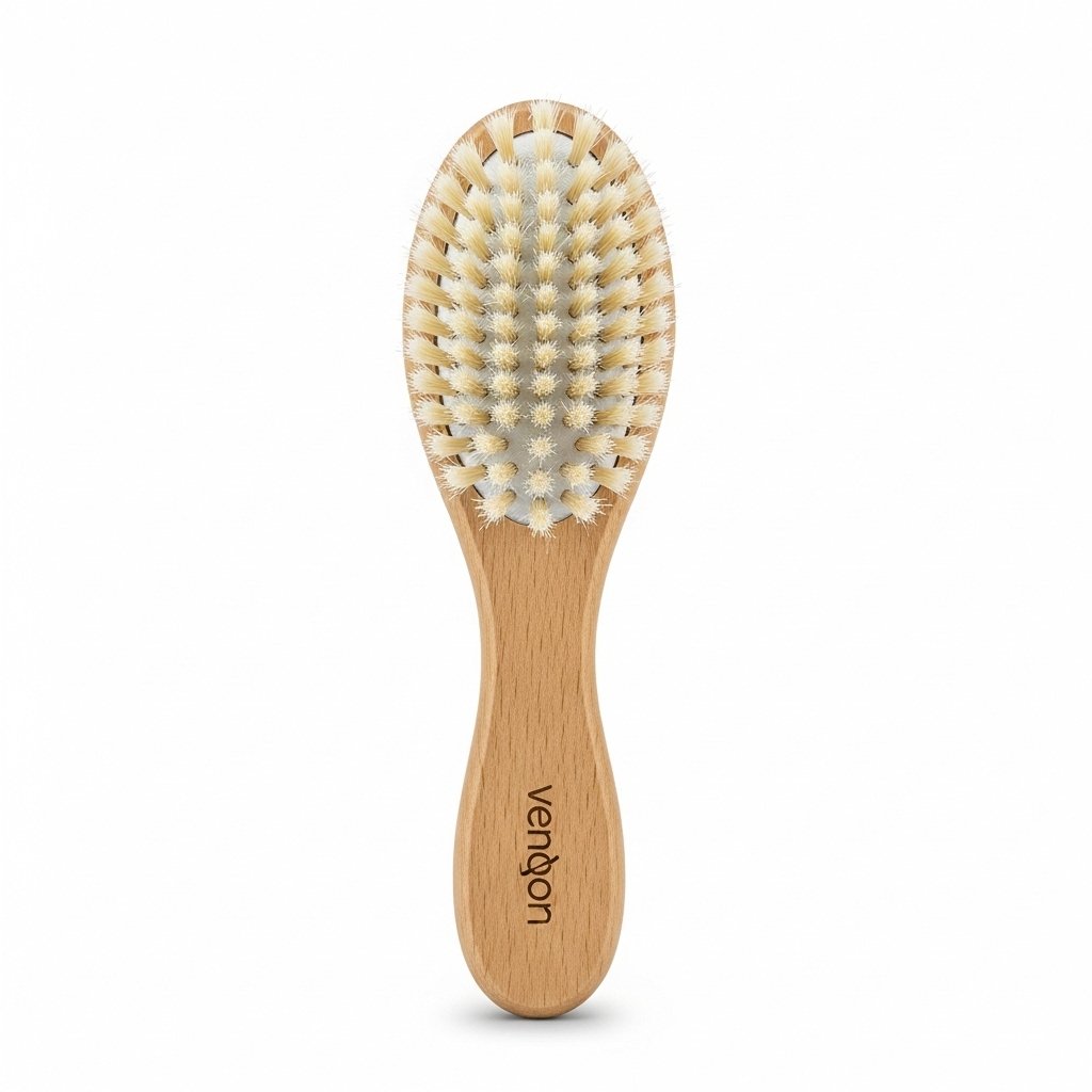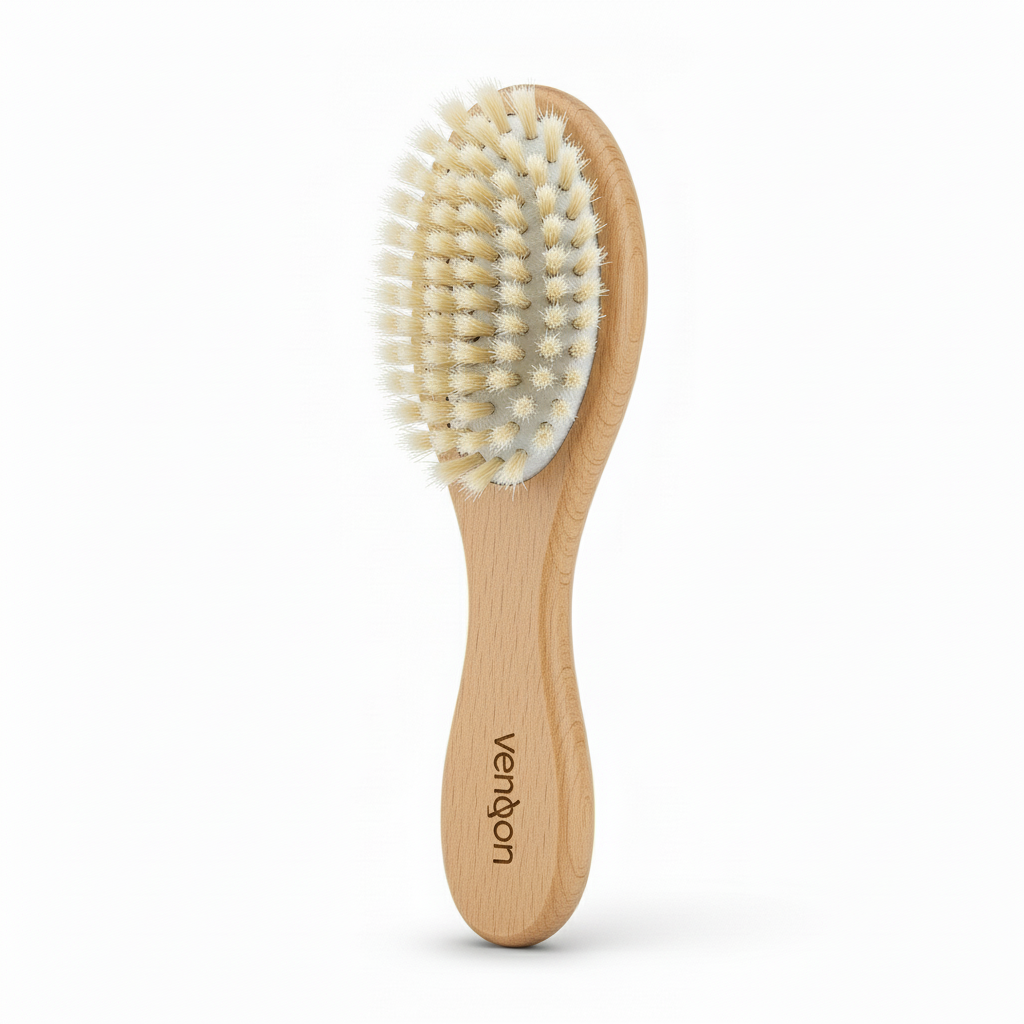 Create a soothing grooming routine with the Venqora Baby Hair Brush. Designed with ultra-soft natural bristles, this brush is exceptionally gentle on your newborn’s delicate scalp and fine hair. It’s the perfect tool for daily care, helping to calm your baby while promoting healthy hair.